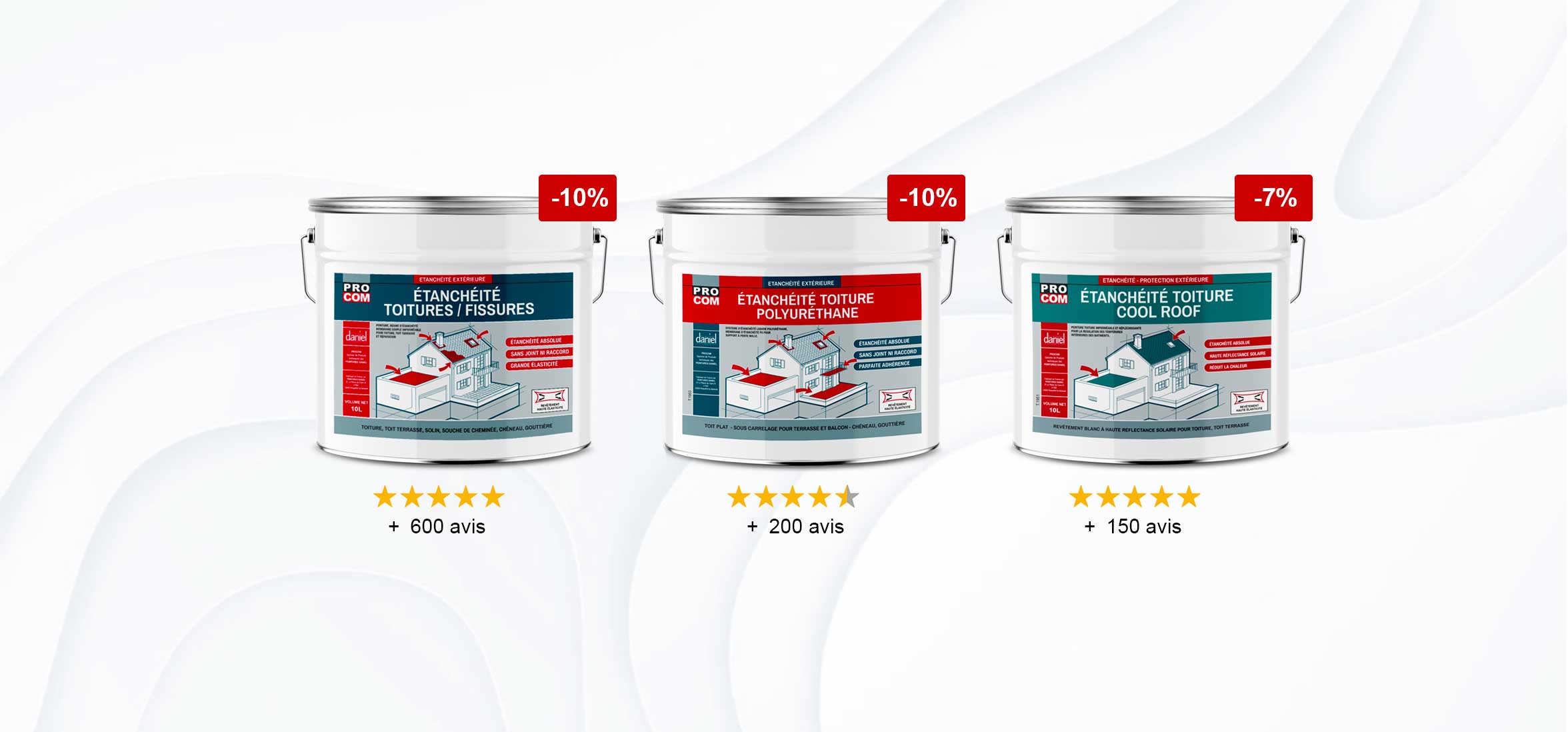 Résine d’étanchéité polyuréthane mono-composante de grande élasticité conçue pour la protection et l’étanchéité de toiture, toit-terrasse, toit plat à pente nulle en béton, bitume, bac acier, bois... Étanchéité Toiture Polyuréthane PROCOM® s'applique à froid comme une peinture et constitue après polymérisation une véritable membrane d'étanchéité sans joint, ni raccord, soudée au support. Expertise technique : Étanchéité testée en laboratoire...