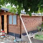Quatre couches sont posées avec tous les soins nécessaires; La pluie s'infiltre quand même... quelques traces, des gouttes. D'autre couches encore? élargir la surface traitée? Cela concerne une descente d'un collecteur de pluie d'un toit en terrasse...