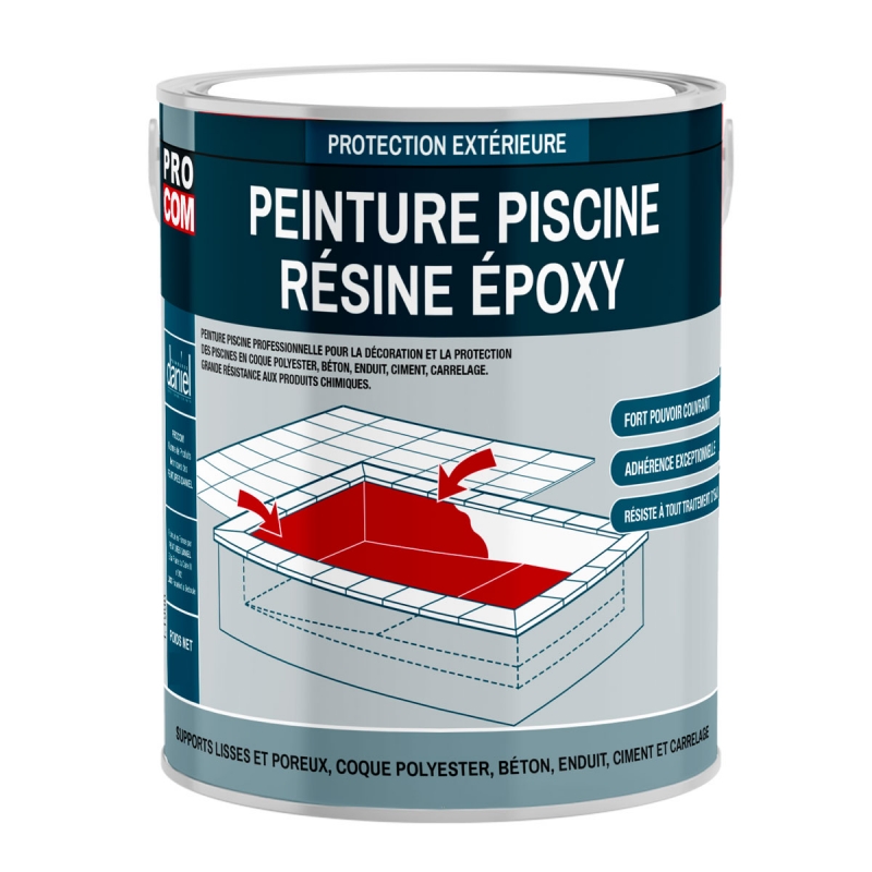 Peinture piscine époxy pour béton, coque polyester, carrelage, grande dureté, haute adhérence et résistance chimique PROCOM